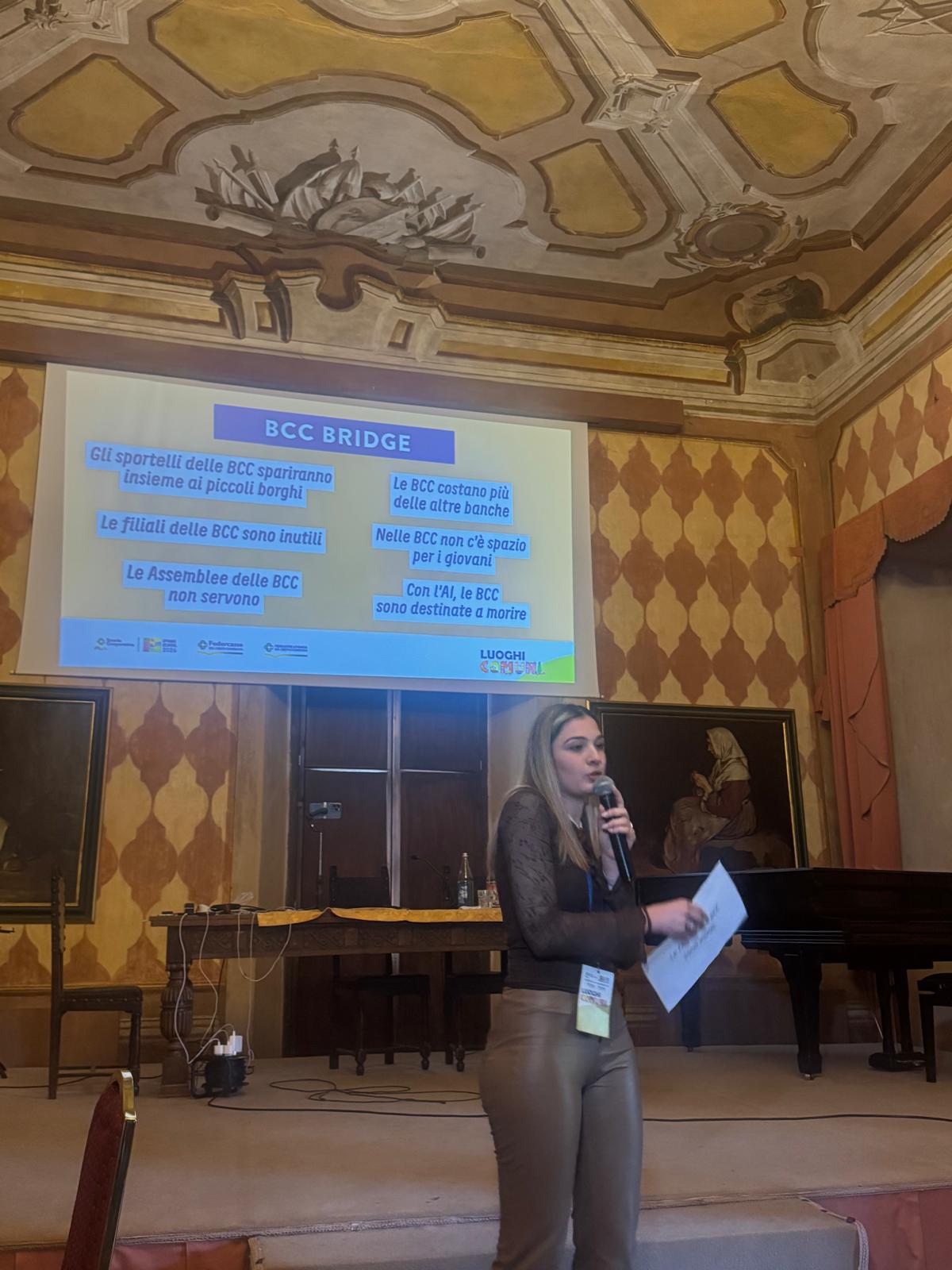 Nel pomeriggio del sabato, i partecipanti in un Bridge di confronto con Presidenti e direttori, introdotto da Matteo Spanò, Vice Presidente Federcasse, hanno vissuto un momento di dialogo, connessione e condivisione tra esperienze.