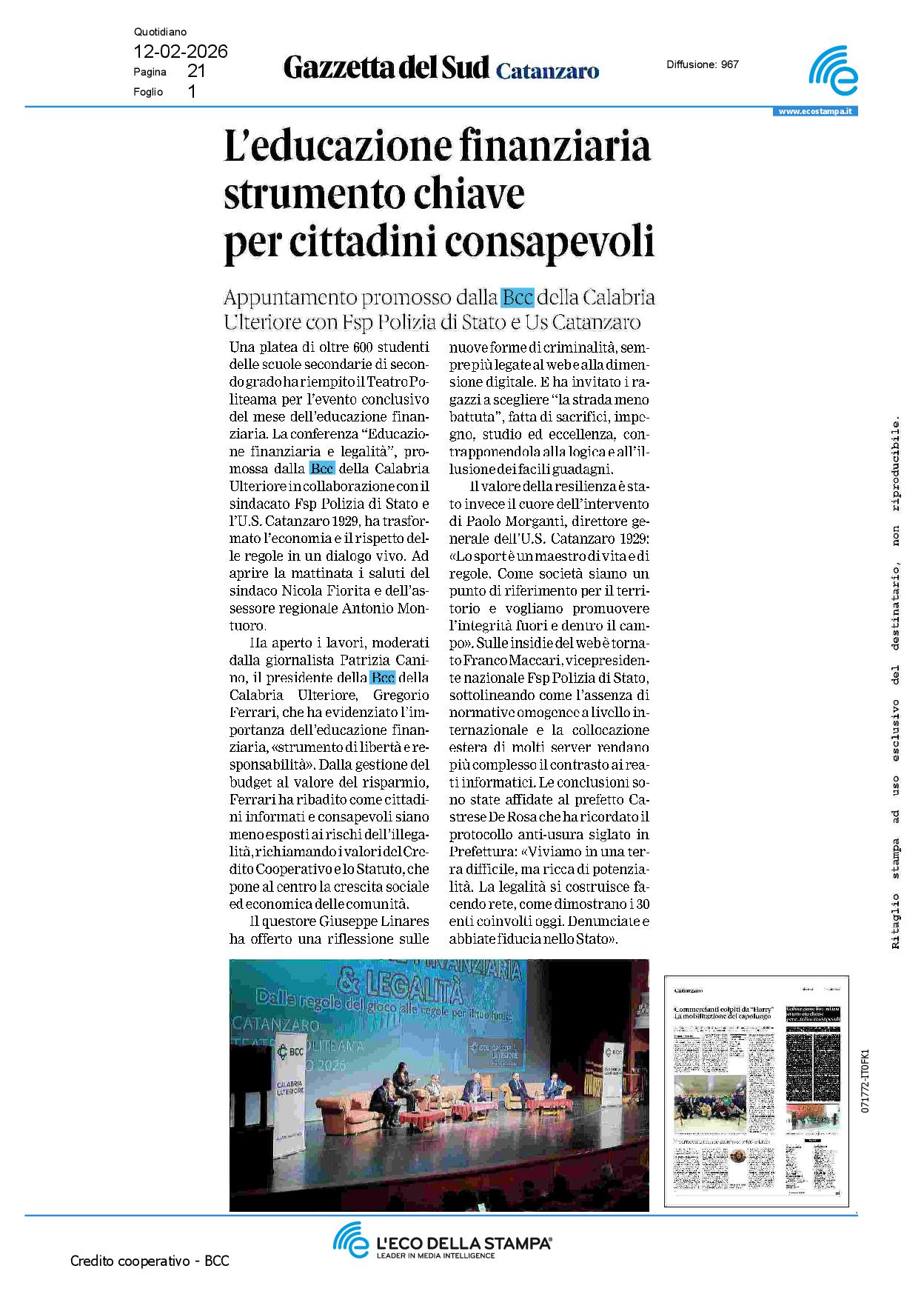 Contenuto originale: Gazzetta del Sud, 12 Febbraio 2026